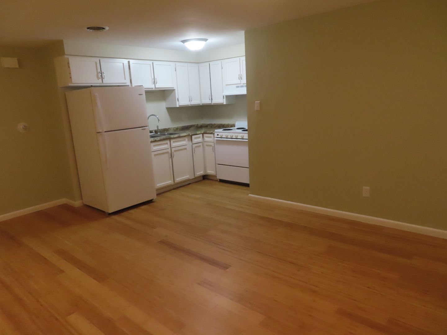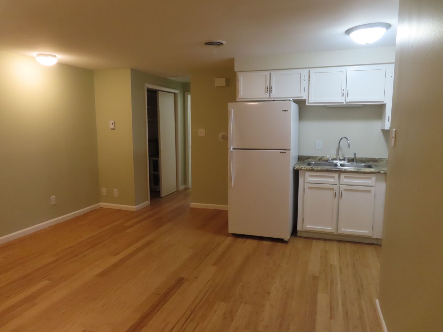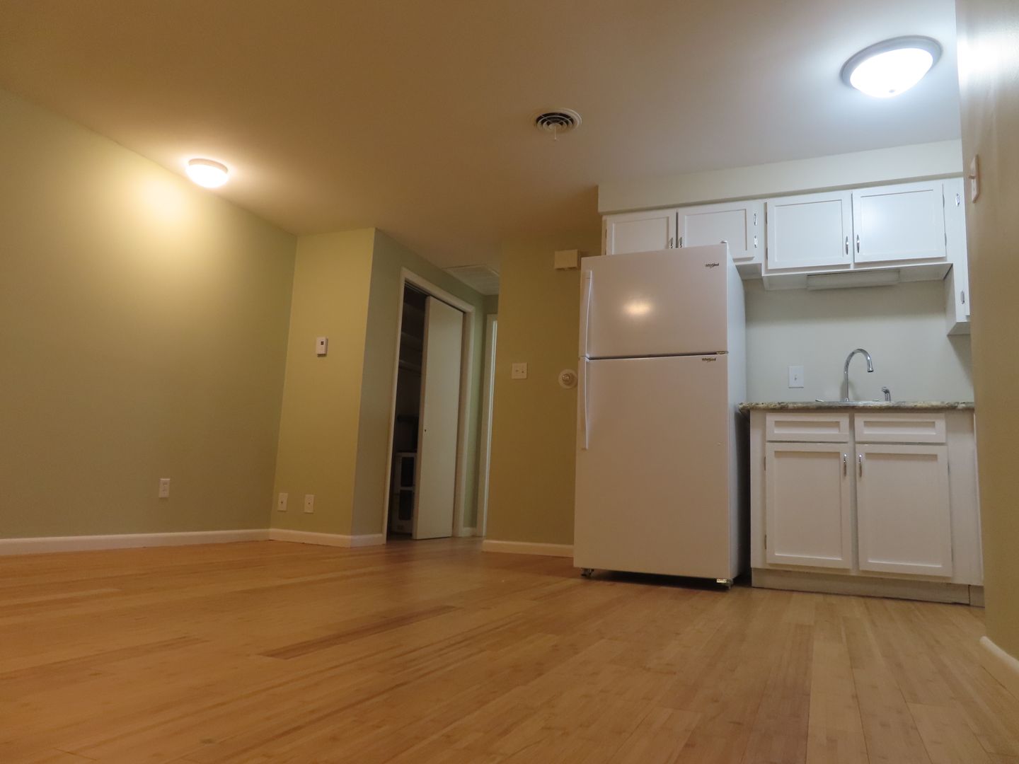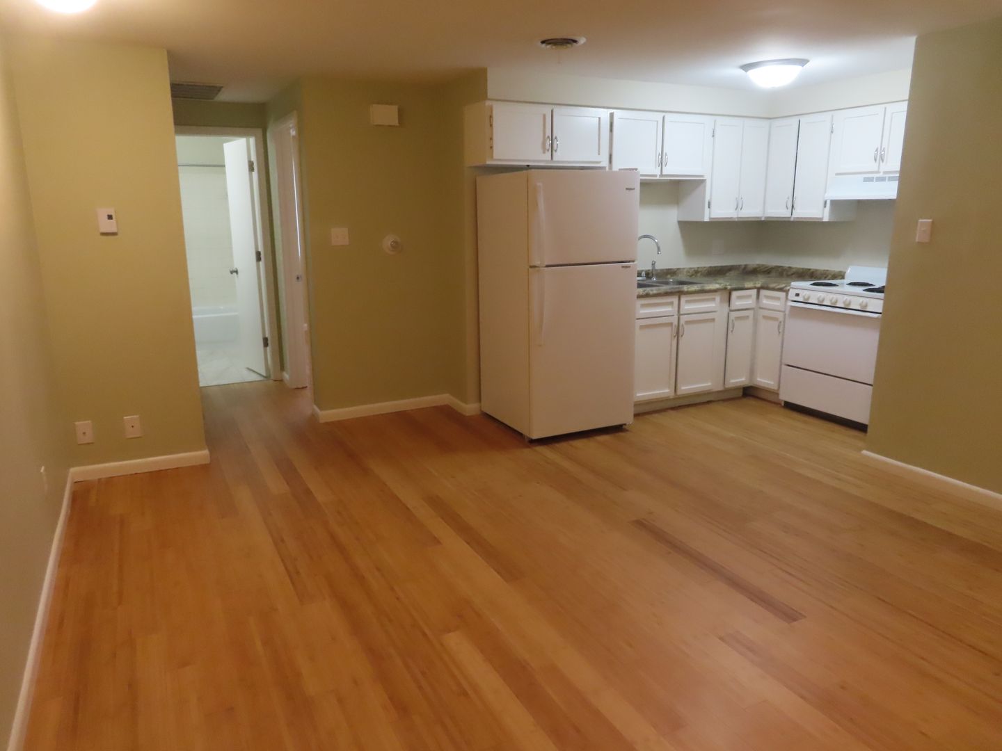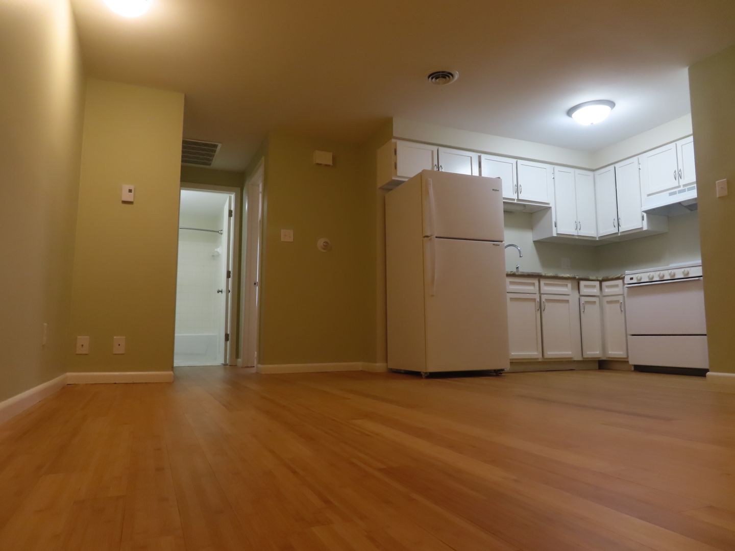 One bedroom walk up. Common hallway. Well laid out floor plan. Laying down new Bamboo hard wood floors and remodeling the kitchen. Off street parking. Laundry on property. Air Conditioning. Up to 2 cats are welcome with a 1 time $200 pet fee and $20 a month per pet.