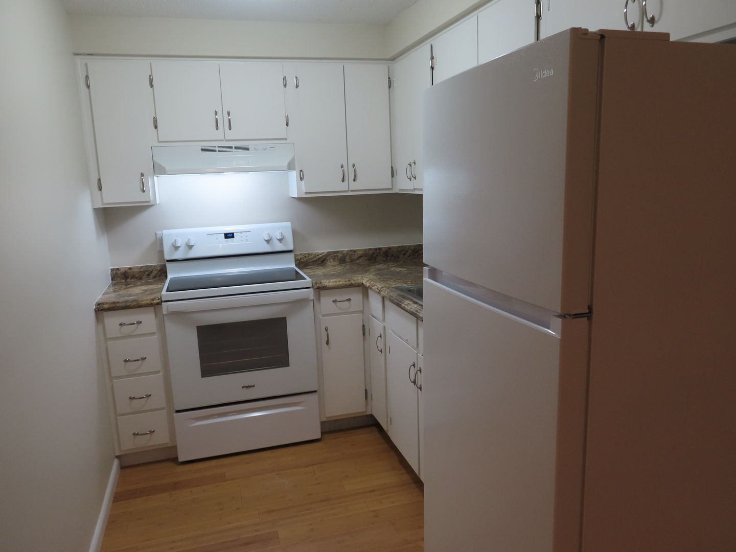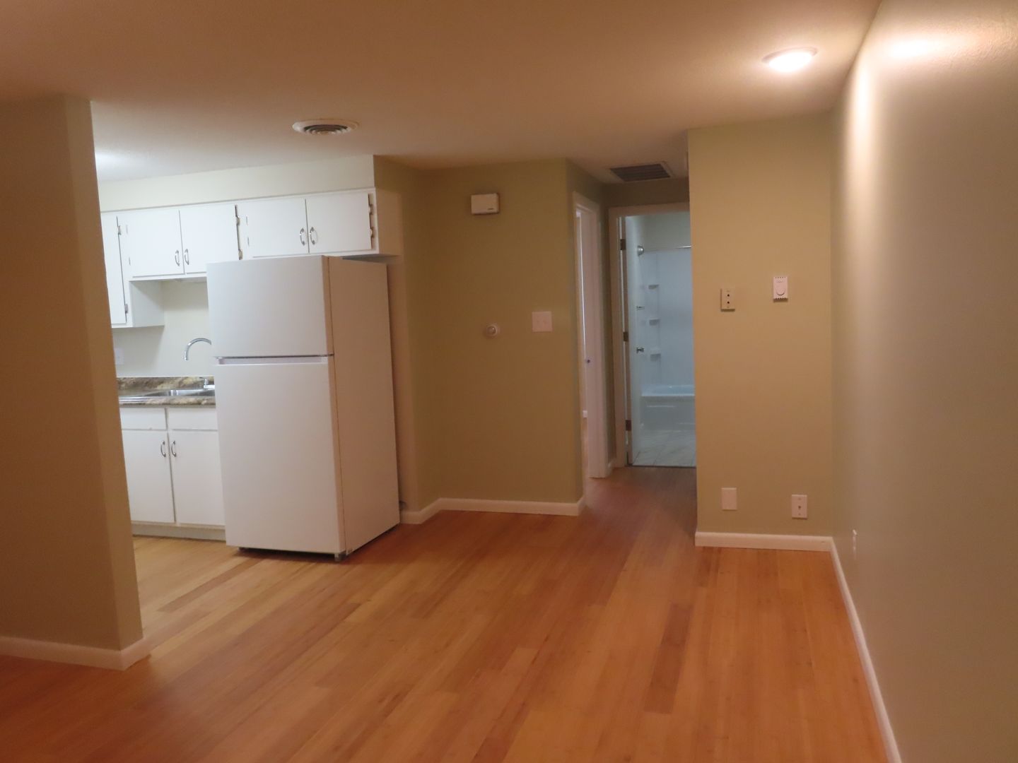 One bedroom walk up. Common hallway. Well laid out floor plan. New Bamboo hard wood floors and remodeled kitchen. Modern bathroom. Off street parking. Laundry on property. Air Conditioning. Up to 2 cats are welcome with a 1 time $200 pet fee and $20 a month per pet. Additional non dogs beyond those listed above are charged a $100 pet fee and $20 a month each. This is a NON-SMOKING Building, which includes recreational smoking.